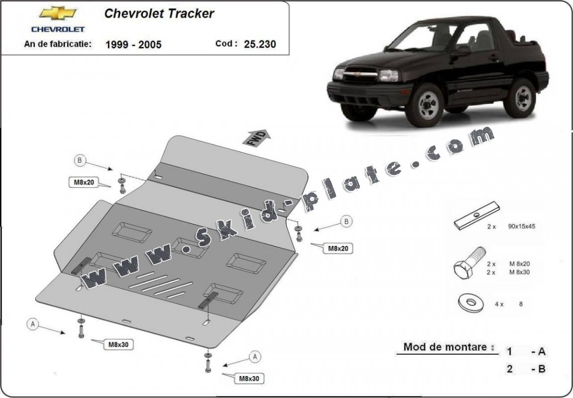 | The skid plate is new and fits perfectly for all versions of Chevrolet Tracker manufactured between 1999 and 2005. |