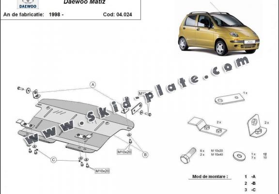 | The skid plate is new and fits perfectly for all versions of Daewoo Matiz manufactured between 1998 and 2004. |