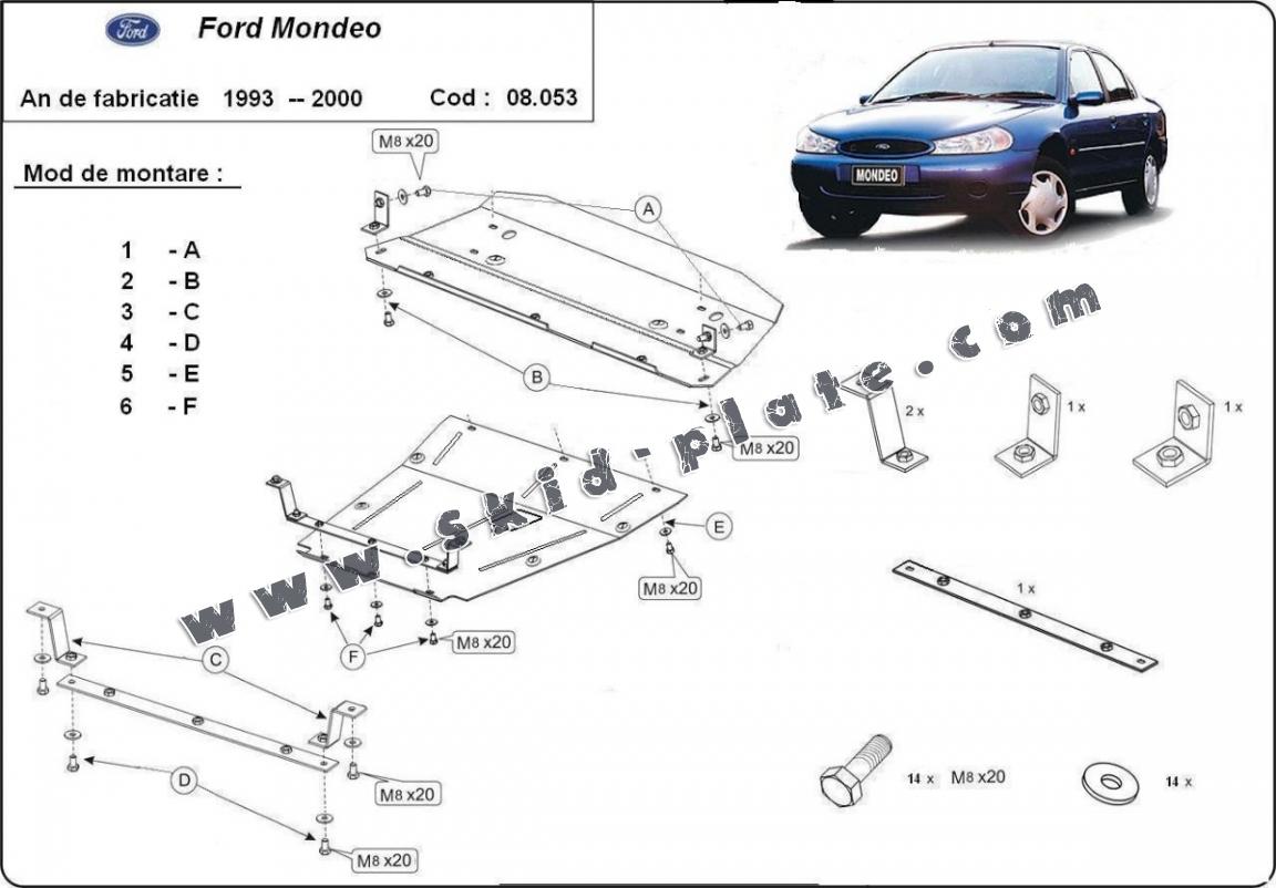 | The skid plate is new and fits perfectly for the Ford Mondeo 1,2, with the following engine/drive versions: 1.8 , 2.0 - manufactured between 1992 and 2000. |