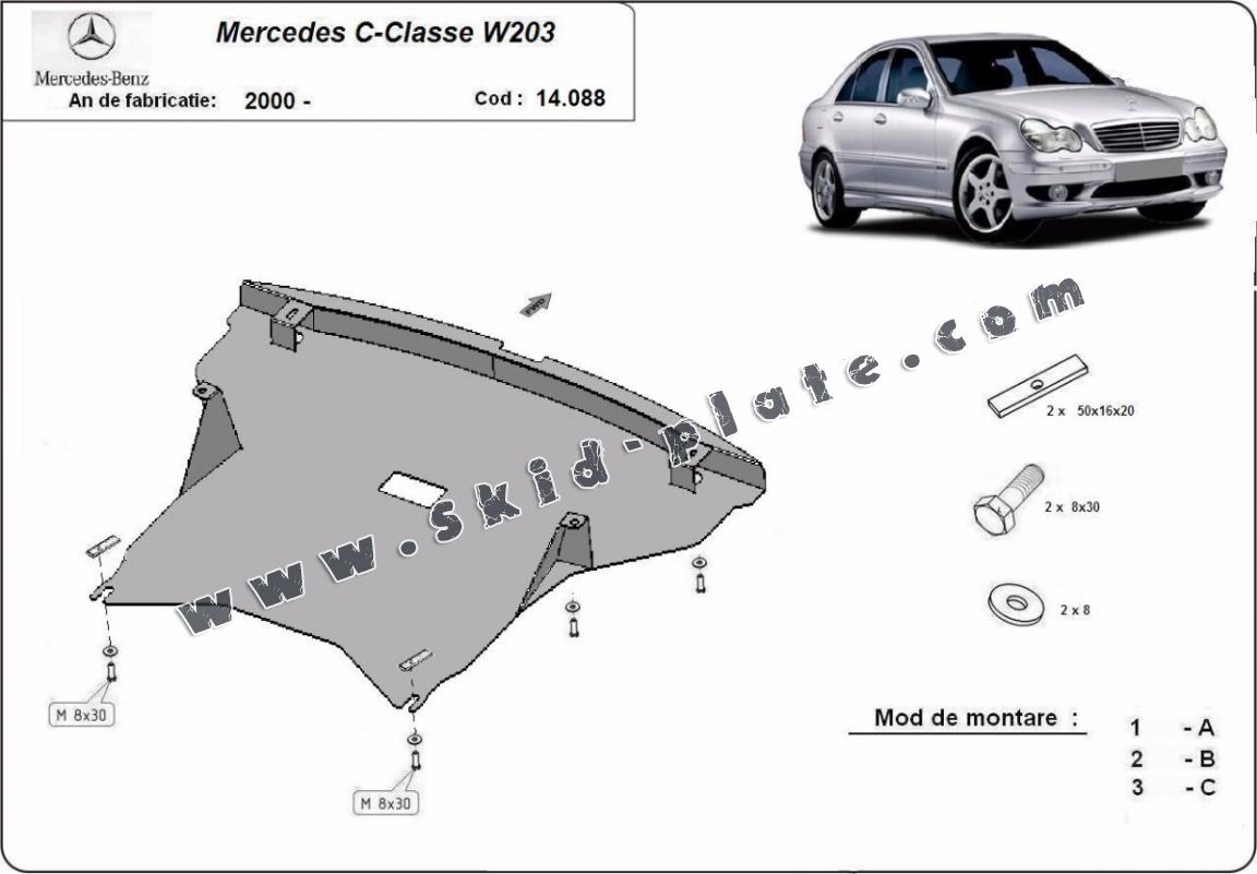 | The skid plate is new and fits perfectly for the Mercedes C-Class W203, with the following engine/drive versions: 2.2 diesel - manufactured between 2000 and 2007. |