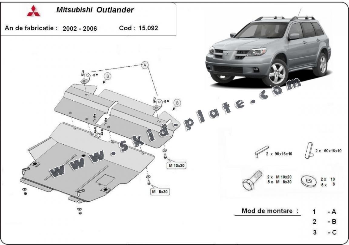| The skid plate is new and fits perfectly for the Mitsubishi Outlander, with the following engine/drive versions: - manufactured between 2002 and 2006. |