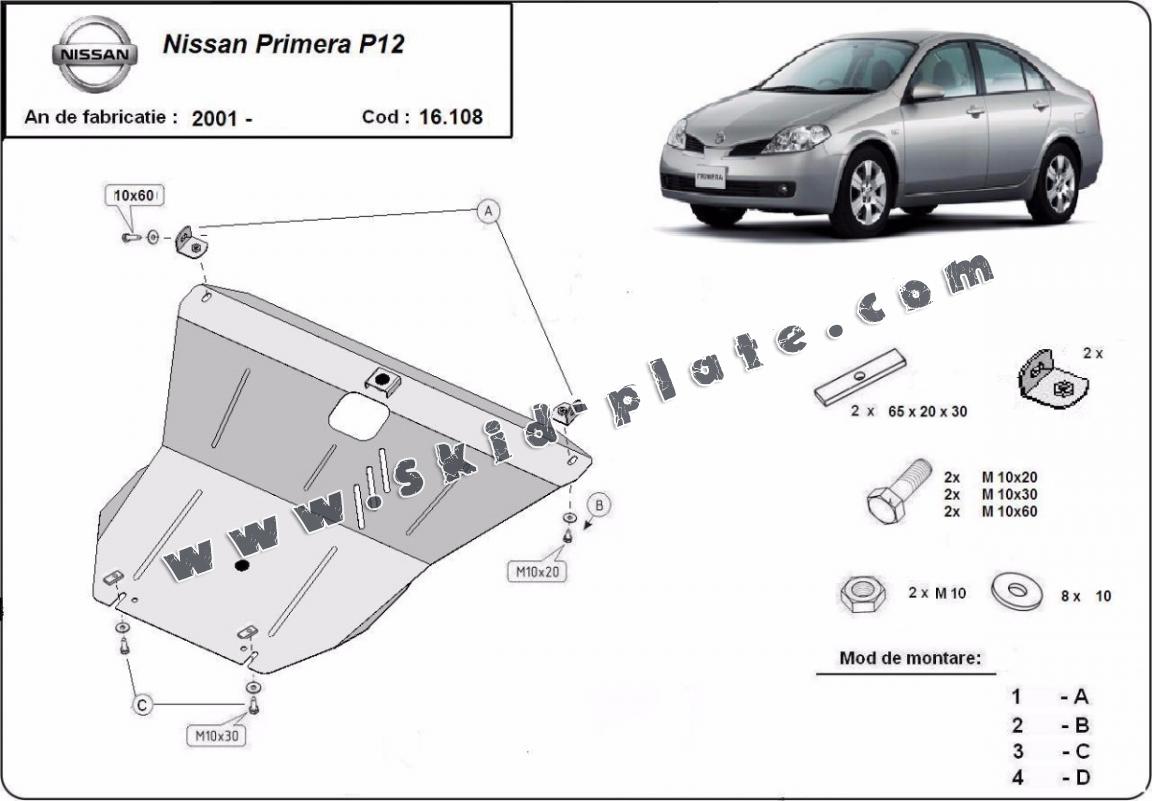 | The skid plate is new and fits perfectly for all versions of Nissan Primera P12 manufactured between 2001 and 2007. |