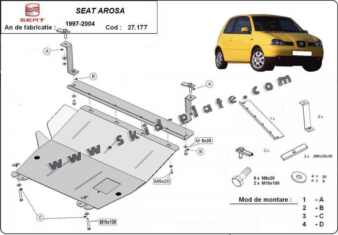 | The skid plate is new and fits perfectly for the Seat Arosa, with the following engine/drive versions: 1.0; 1.4; 1.4Tdi; 1.7Sdi - manufactured between 1997 and 2004. |