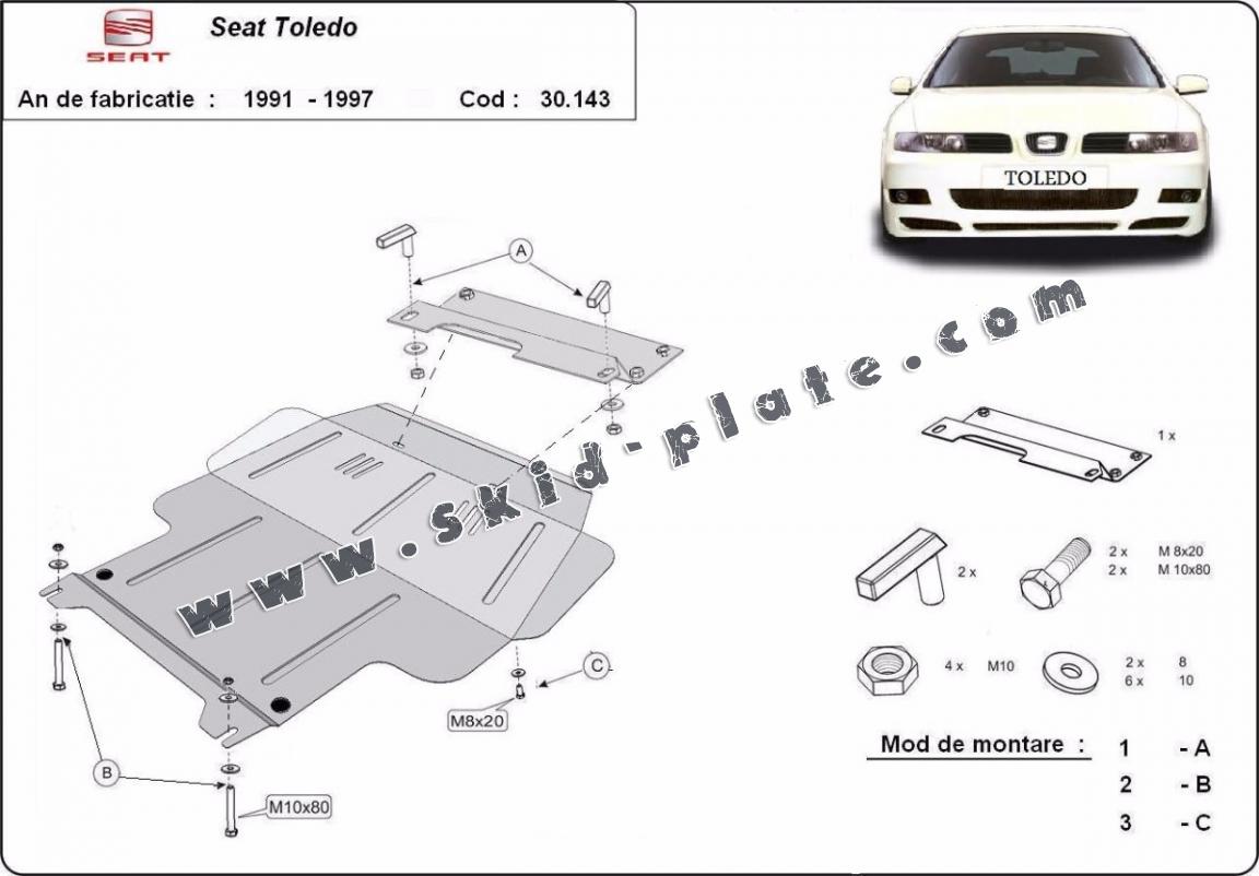 | The skid plate is new and fits perfectly for all versions of Seat Toledo 1 manufactured between 1991 and 1998. |