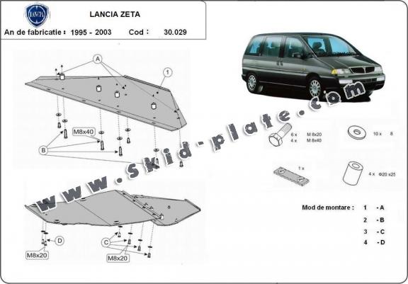 Steel skid plate for the protection of the engine and the gearbox for Lancia Zeta