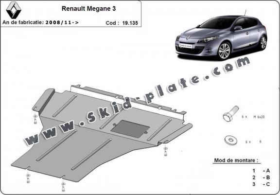 Steel skid plate for the protection of the engine and the gearbox for Renault Megane 3