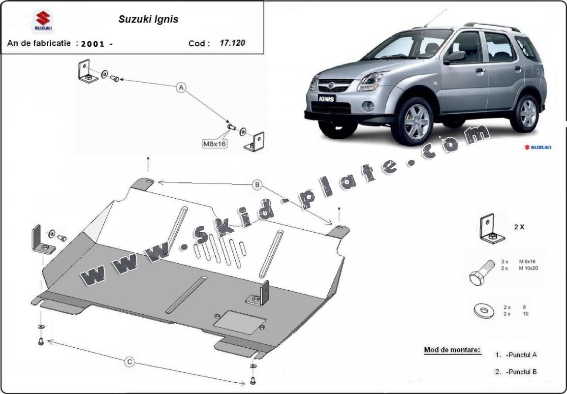 Steel skid plate for the protection of the engine and the gearbox for Suzuki Ignis
