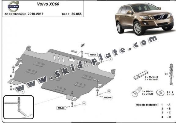 Steel skid plate for the protection of the engine and the gearbox for Volvo XC60