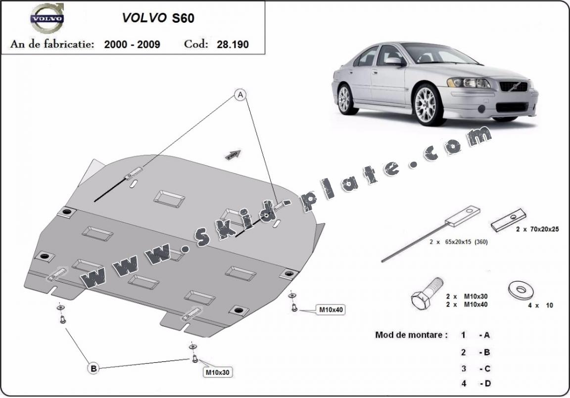 | The skid plate is new and fits perfectly for all versions of Volvo S60 manufactured between 2000 and 2009. |