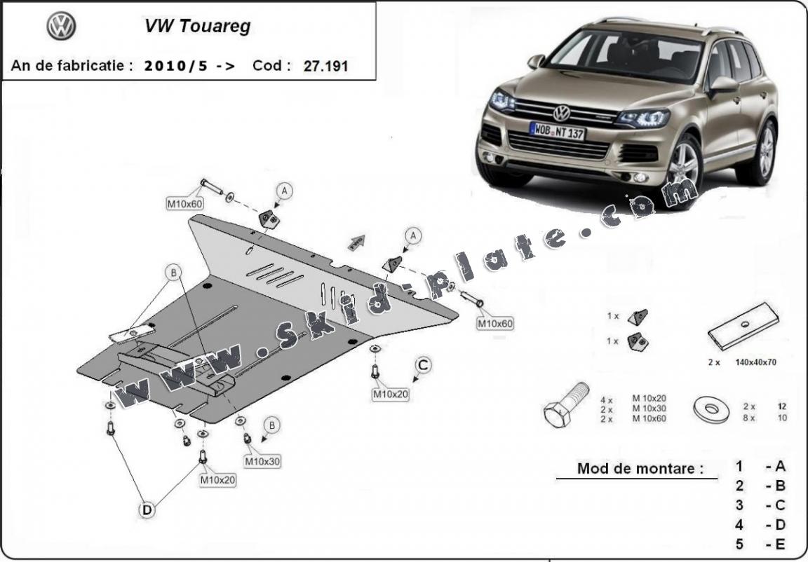 | The skid plate is new and fits perfectly for all versions of VW Touareg manufactured between 2010 and 2018. |