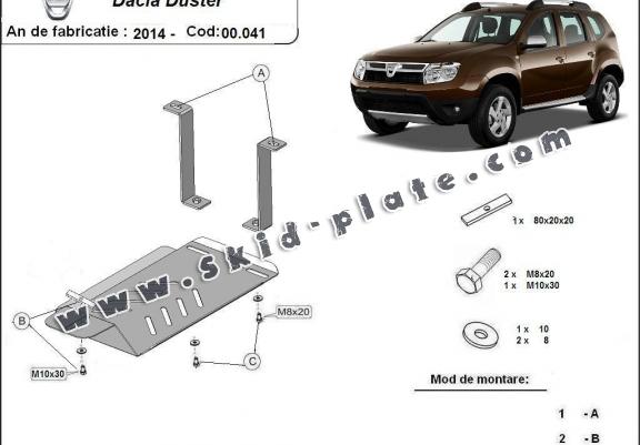 | The skid plate is new and fits perfectly for the Dacia Duster 4x4, with the following engine/drive versions: 4x4 - manufactured between 2014 and 2017. |