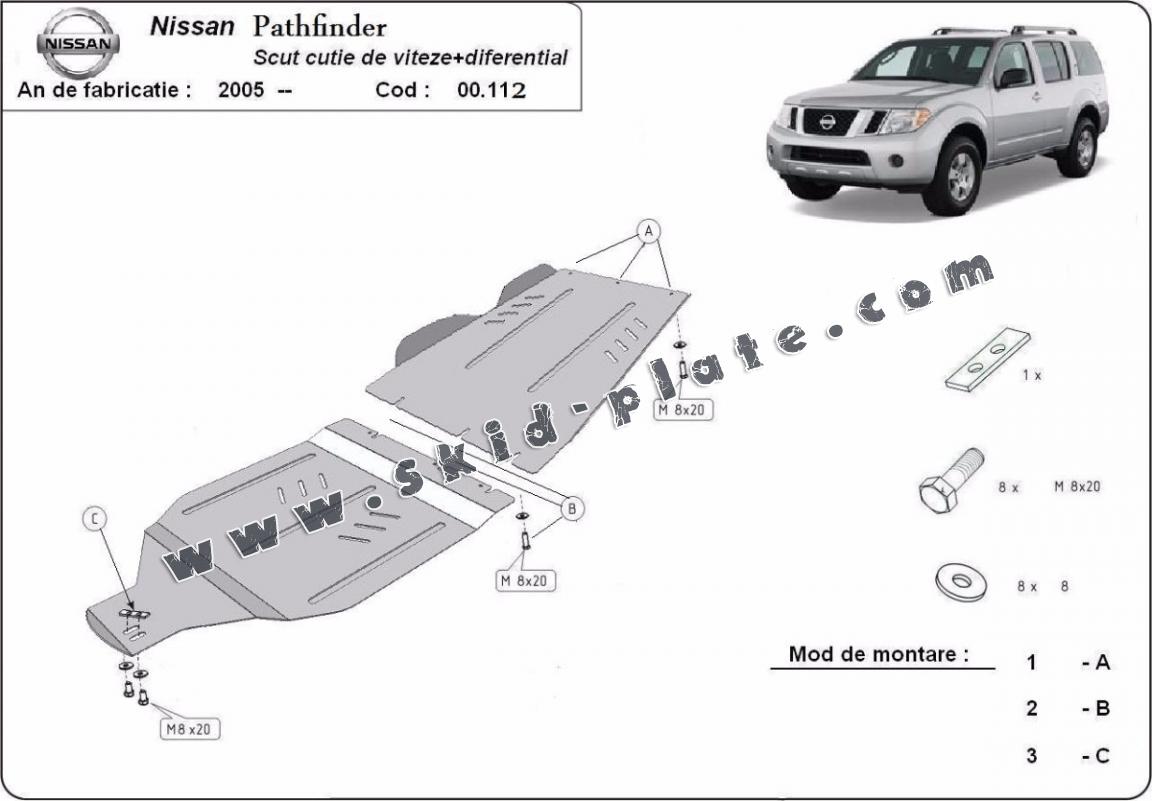 Steel gearbox and differential skid plate for Nissan Pathfinder