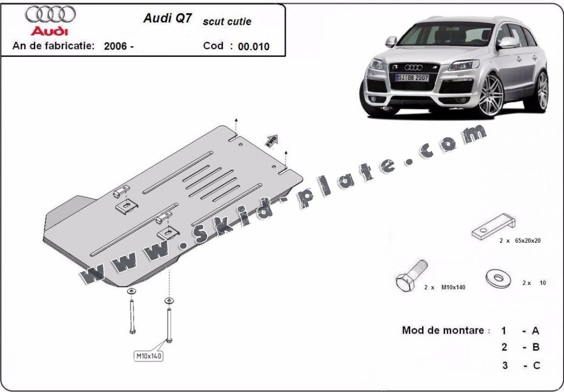 | The skid plate is new and fits perfectly for the Audi Q7, with the following engine/drive versions: S line y compris - manufactured between 2006 and 2015. |