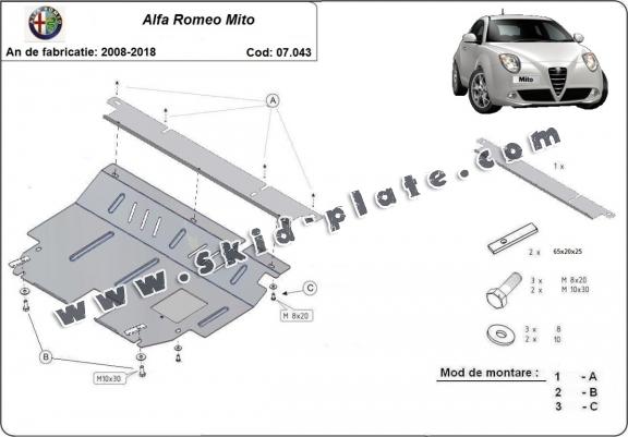 | The skid plate is new and fits perfectly for all versions of Alfa Romeo Mito manufactured between 2008 and 2018. |