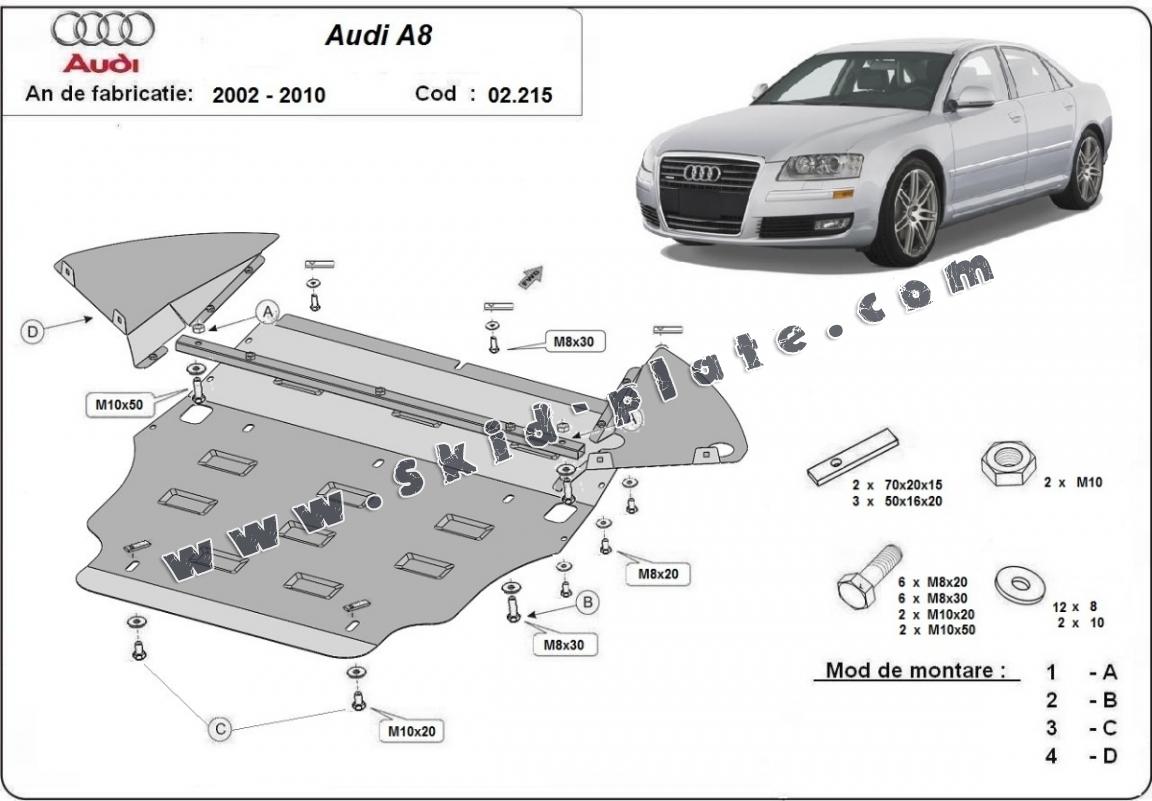 | The skid plate is new and fits perfectly for all versions of Audi A8 manufactured between 2002 and 2010. |