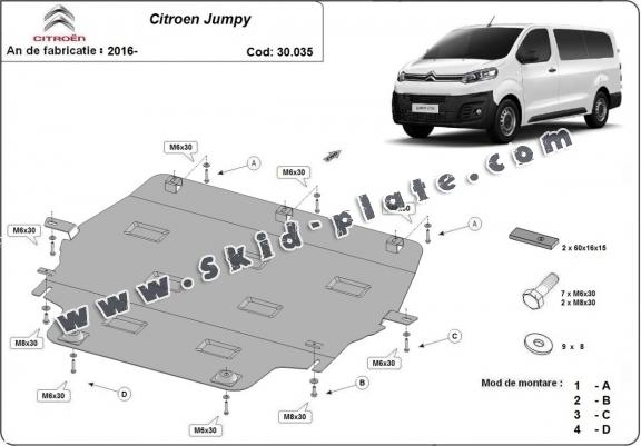 | The skid plate is new and fits perfectly for all versions of Citroen Jumpy manufactured between 2016 and 2025. |