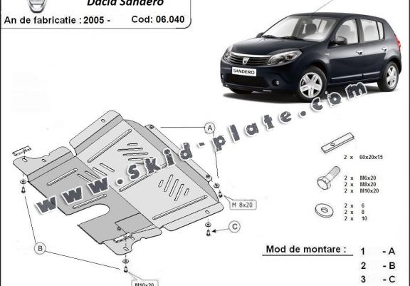 | The skid plate is new and fits perfectly for all versions of Dacia Sandero manufactured between 2005 and 2012. |