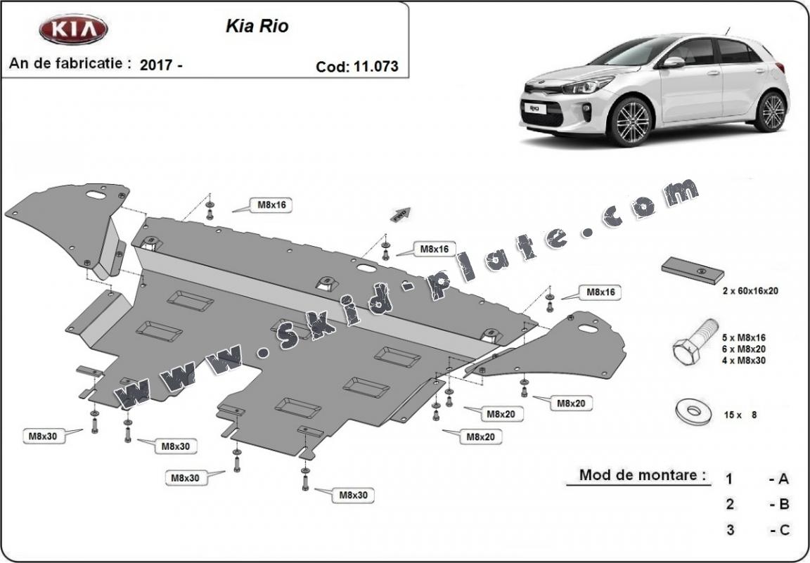 | The skid plate is new and fits perfectly for all versions of Kia Rio 4 manufactured between 2017 and 2025. |