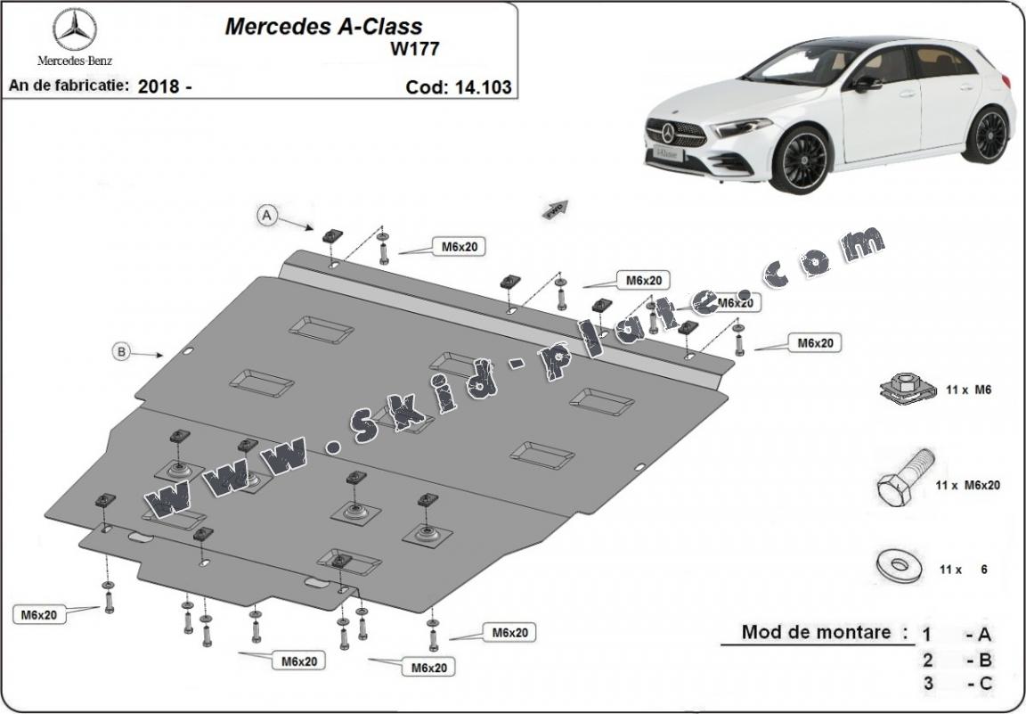 | The skid plate is new and fits perfectly for all versions of Mercedes A-Class W177 manufactured between 2018 and 2025. |