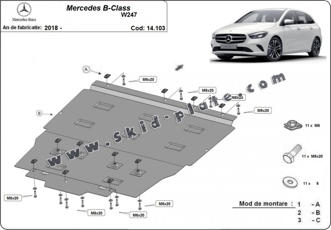 | The skid plate is new and fits perfectly for all versions of Mercedes B-Class W247 manufactured between 2019 and 2025. |