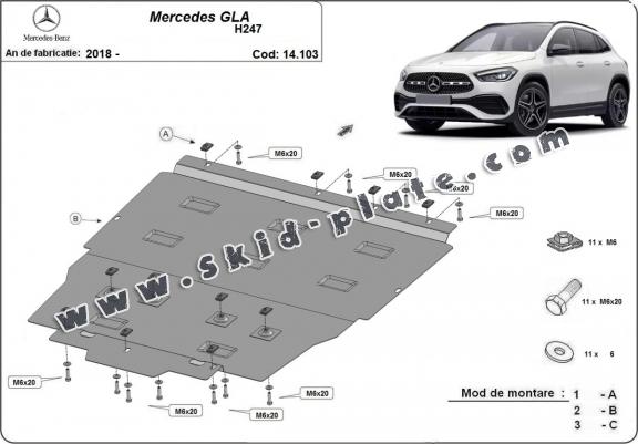 | The skid plate is new and fits perfectly for all versions of Mercedes GLA H247 manufactured between 2019 and 2025. |