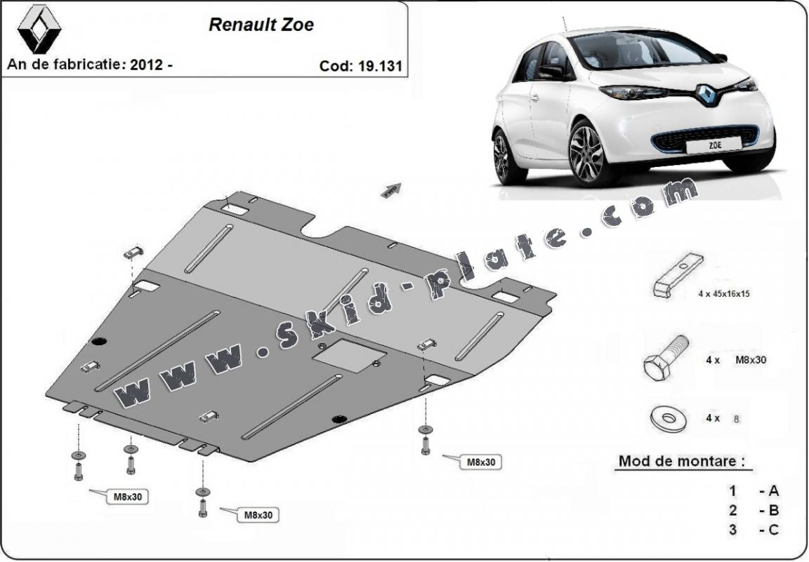 | The skid plate is new and fits perfectly for all versions of Renault Zoe manufactured between 2012 and 2025. |