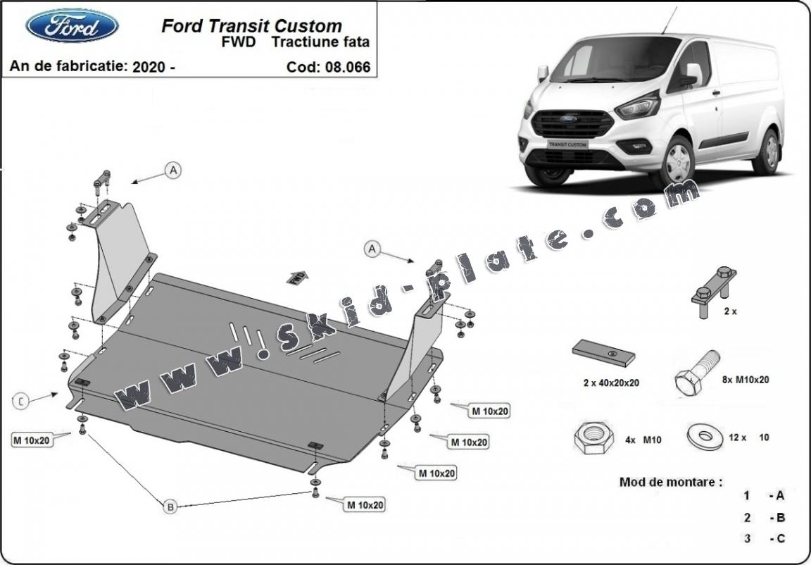Steel skid plate for the protection of the engine and the gearbox for Ford Transit Custom - FWD