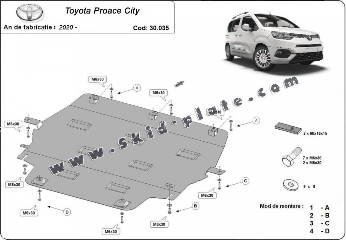 | The skid plate is new and fits perfectly for the Toyota Proace City, with the following engine/drive versions: - manufactured between 2020 and 2025. |